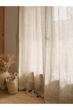 Keten Perde Bej Çubuk Cepli