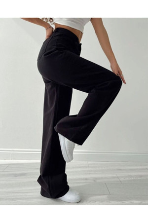 Lamira Wide Leg Palazzo Siyah Solmaz Yüksek Bel Esnek Zeus Jean