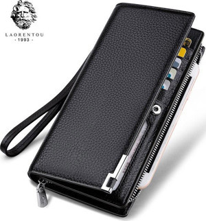 Hakiki Deri-Uzun Erkek Cüzdan Kartlık-Klips Kilit-İç Fermuarlı Siyah
