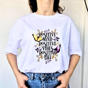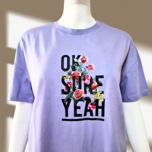 Lila Motto ve Çiçek Baskılı Tshirt