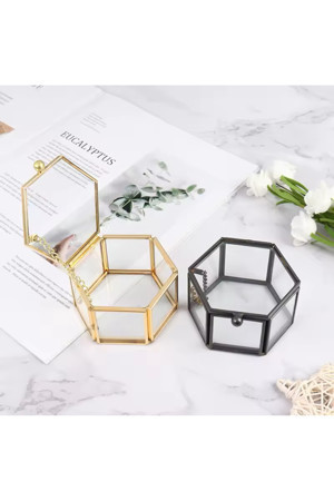 20076530 Layla Events Metal Cam Altıgen Yüzük Ve Takı Kutusu 1 Adet