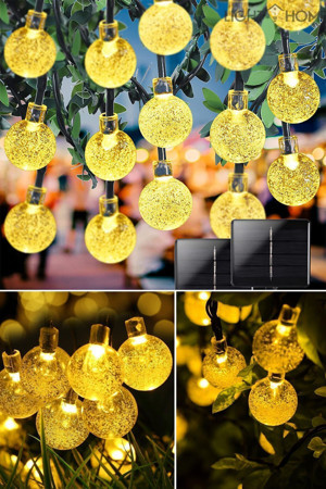 Güneş Enerjili Işıklar 50 Led 7 Metre Sarı Kristal Küre 8 Modlu Bahçe Düğün Parti Dekor Işıkları
