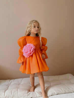 Rose Oranj Şifon Kız Çocuk Parti Elbisesi