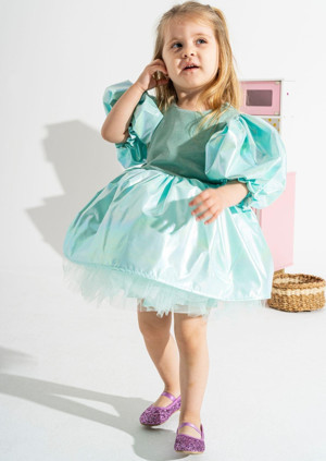 Shiny Simli Bebe Yakalı Çocuk Elbisesi