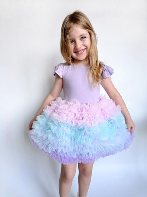 Rainbow Tütü Etekli Kısa Kollu Çocuk Elbisesi
