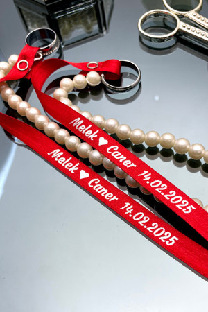 İncili Söz Nişan Yüzük Kurdelesi (DÖKÜLEN INCİ, GÜMÜŞ YAZI) Kırmızı (1 ADET) Kırmızı 42262