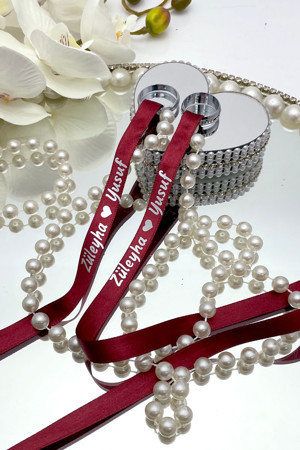 Söz Nişan Yüzük Kurdelesi (Dökülen inci, Gümüş Yazı) (1 Adet) Bordo 42263