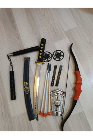 Ninja Samuray Dövüş Savaş Seti Ok Yay Kılıç Kalkan Mınçıka Ninja Yıldız Fırlatma Bıçağı 10 Parça