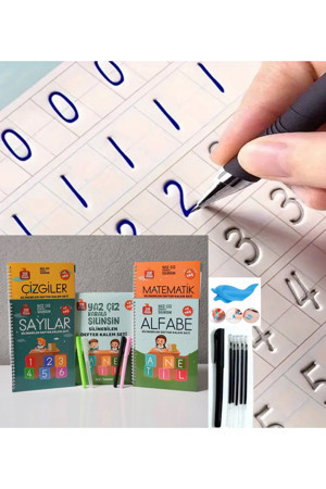 Sihirli Yazı Seti Silinebilir Kelemli Kabartmalı Defter Yazma Öğretici 4 Kitap+1 Kalem+5 Yedek Uç