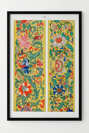 Çerçeveli Osmanlı Motifli Renkli Çiçek Desenli Poster - Modern Duvar Dekoru