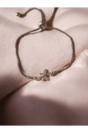 Gümüş Renk Kelebek Figürlü Zirkon Taşlı Kadın Bileklik | Ayarlanabilir Şık Model