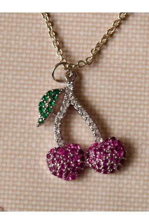 Kiraz Figürlü Zirkon Taşlı Kadın Kolye | Renkli & Eğlenceli Tasarım