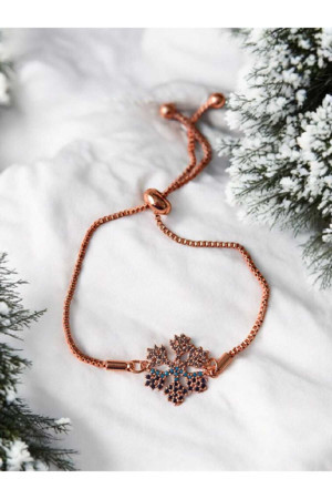 Rose Kaplama Kar Tanesi Figürlü Ayarlanabilir Kadın Bileklik | Zirkon Taşlı Şık Tasarım