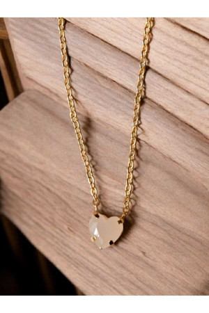 Beyaz Kalp Taşlı Altın Zincirli Kolye – Minimal Ve Zarif Tasarım