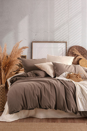 Iris Mocca %100 Pamuklu Yıkamalı İpliği Boya Vintage Çift Kişilik Nevresim Takım 200x220