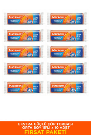 Macromax Ekstra Güçlü Çöp Torbası Orta Boy - 15 Li Paket X10