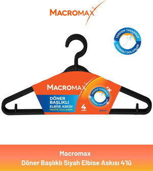 Macromax Döner Başlıklı Elbise Askısı Siyah 4'lü