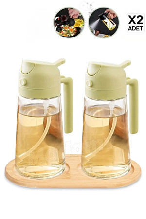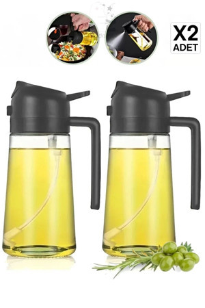 2'Li Çift Fonksiyonlu Cam Yağdanlık 550Ml Kulplu Zeytinyağı Sıvıyağ Şişesi Airfryer Sprey Yağlık