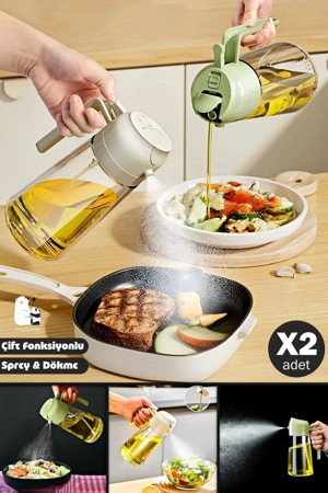 2 Adet Çift Fonksiyonlu Cam Sprey Yağdanlık 450Ml Zeytinyağı Sıvıyağ Şişe Etiketli Airfryer Yağlık