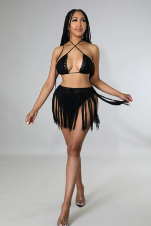 Tığ Örgü String Tanga Çizgili Bikini Takım