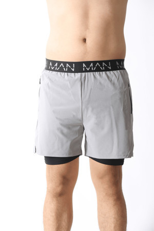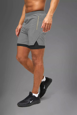 Gri Unisex Gym Ve Fitness Astarlı Taytlı Şort