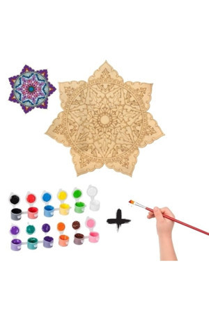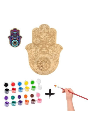 Fatima Desen Büyük Boy Ahşap Boyama Seti, 50 Cm, 12 Renk Akrilik Boya, Fırçasıyla Beraber