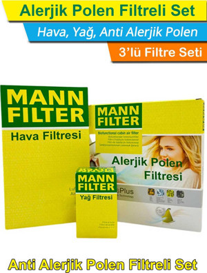 Ford Focus 2 1.6 Benzinli MANN Filtre Bakım Seti 2008-2011 Hava+Yağ+Karbonlu Polen