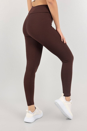Manolya Butik Kadın Kahvrengi Yüksek Bel Fitilli Toparlayıcı Tayt