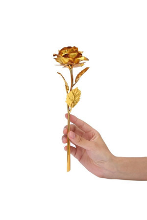 24K Altın Kaplama Solmayan Tek Dal Gül Dayanıklı Gold Folyo