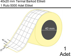 40x20 mm Termal 4'lü Ürün Barkod Etiketi 5000'li Sarım 1 Rulo Etiket
