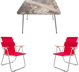 Mermer Desenli Katlanır Masa Ve 2 Adet Katlanır Sandalye Kamp Seti Bahçe Balkon Takımı Kırmızı