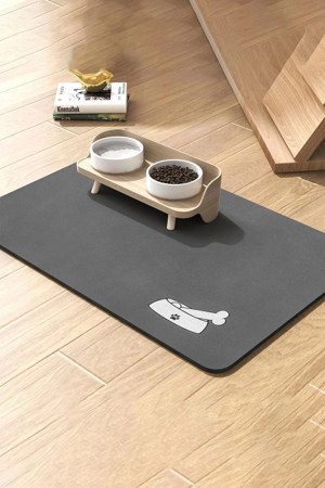Evcil Hayvan Beslenme Matı Kemikli Su Geçirmez Kaymaz Gri Kedi Köpek Mama Paspası 50x70cm