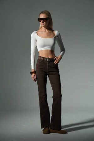 YÜksek Bel boru paça jean Boot Cut Bukle Efekt Punch Crafted Kadın Kot Pantolon