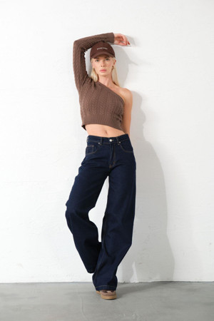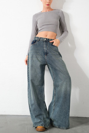 Toka Detaylı Bol Kesim Geniş Paça Rahat Baggy Jean Kot Salaş Kadın Pantolon @Milano