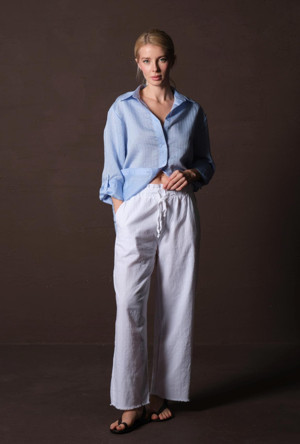 Pamuklu lastikli ve Büzgülü Rahat Kesim Kesik Paça Bilekte Yazlık Kadın Pantolon @Portofino
