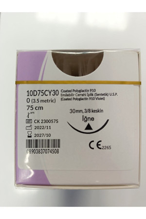 Hayvan Medikal Ürünleri Emilebilir Cerrahi Iplik 0 (3.5Metric) 75 Cm 30Mm 3/8 Keskin Iğne
