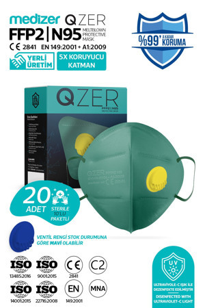 Qzer Yeşil 5 Katlı Ventilli Ffp2 Nr Toz Maskesi 20 Adet Iş Maskesi
