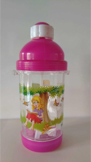 Düğmeli Otomatik Açılma Özellikli Kapaklı Suluk - Matara Kız Çocuk - Pembe Renk Baskılı