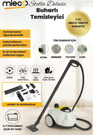 Mieco Stella Deluxe 5 Bar/ 2100W / Çok Fonksiyonlu 20 Parça Buharlı Temizleme Makinası - Beyaz