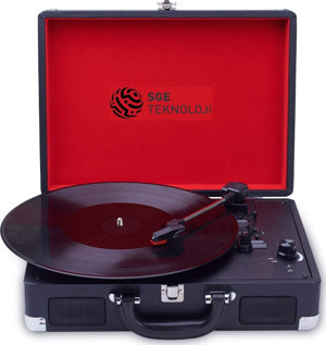 SİYAH NOSTALJİK ŞARJLI BLUETOOTH HOPARLÖRLÜ ÇANTALI PİKAP PLAK ÇALAR