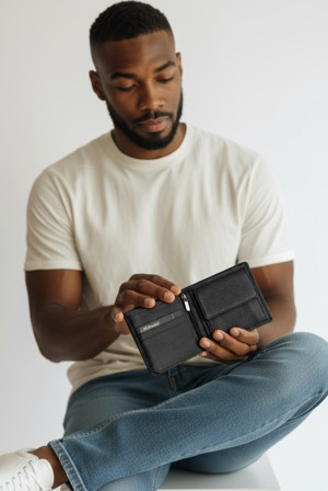 1.Sınıf Işçilik Lüks Hakiki Gerçek Deri Özel Astar Fermuar Gözlü Siyah Deri Lüks Dikey Erkek Cüzdan