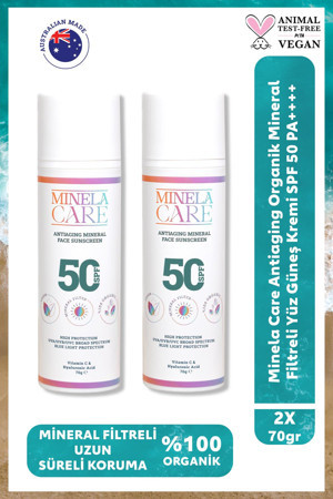 Minelacare Antiaging 100% Organik Mineral Filtreli Yüksek Korumalı Yüz Güneş Kremi SPF50 2x70gr
