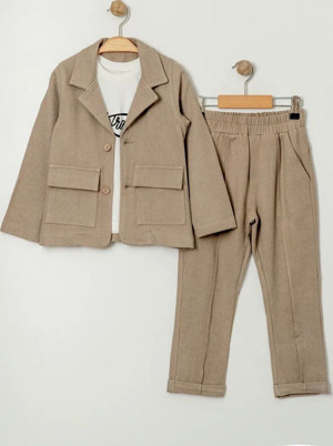 Keten Ceketli Çimalı Erkek Çocuk 3 Lü Takım - Toprak