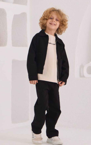 Basic Ceketli Erkek Çocuk Ceketli Lüx 3 Lü Takım - Siyah