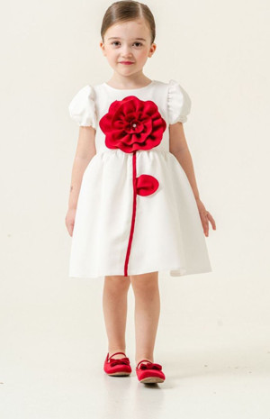 Brode Çiçek Detaylı Kız Çocuk Elbise - Beyaz