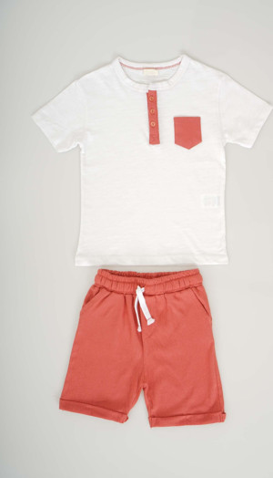 Miniko Kids ERKEK BEBEK CEP MODELLİ VE DÜĞMELİ PAMUK ŞORTLU TAKIM
