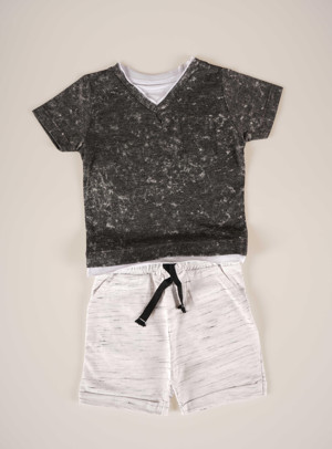 ERKEK BEBEK YAKA MODELLİ DESENLİ PAMUK ŞORTLU TAKIM - Image 1