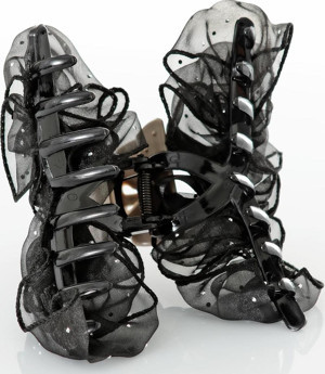 Tüy Detaylı Şık Tüllü Mandal Saç Tokası