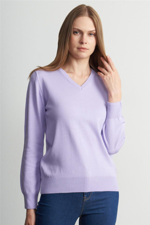 Çetinkaya Miramira Kadın V Yaka Lila Kazak