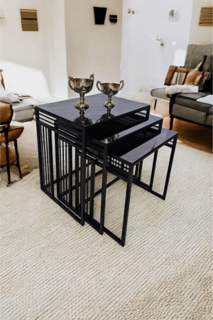 Kante Kante Siyah Fırın Boya 5'Li Sehpa Seti 90x90 cm